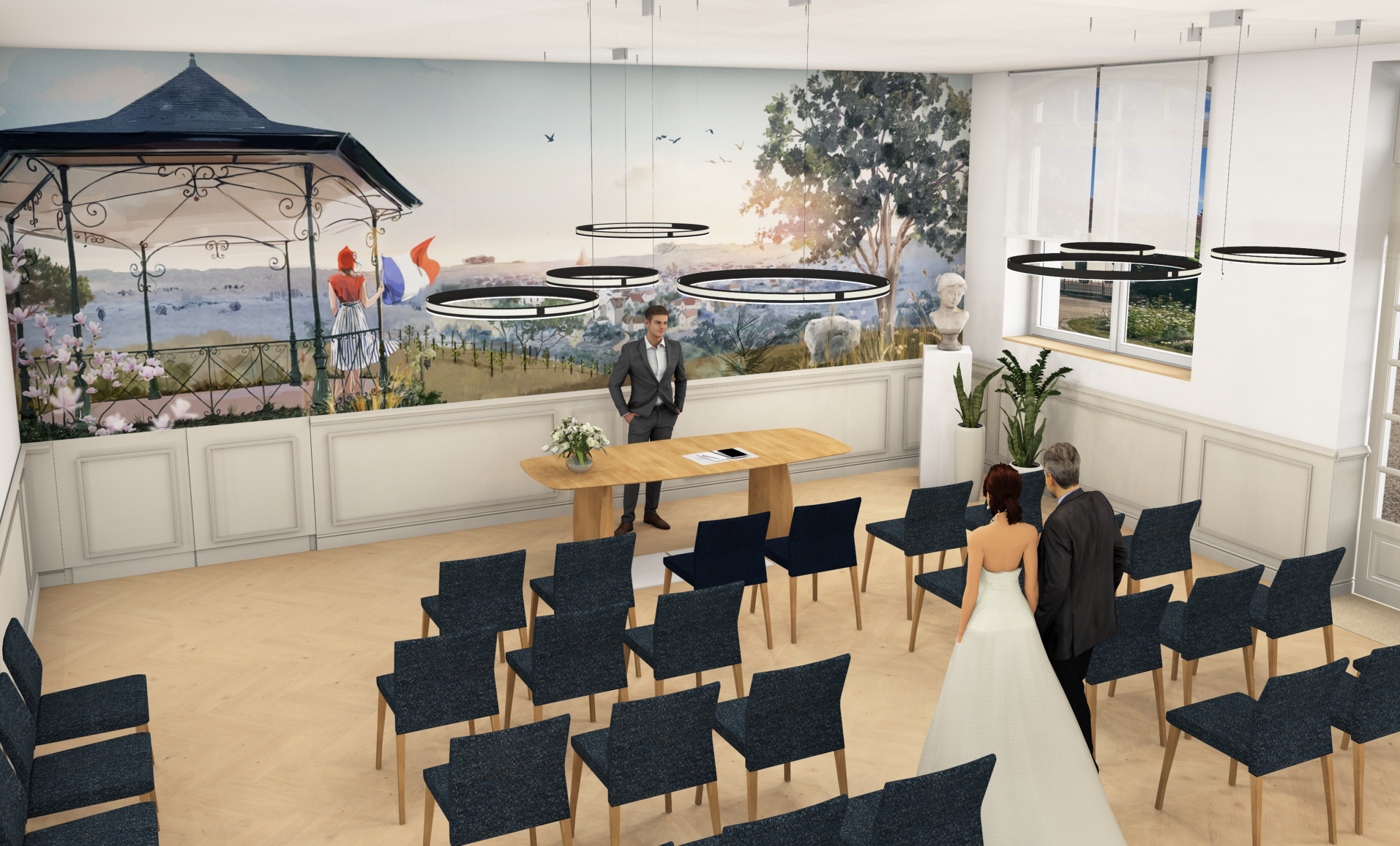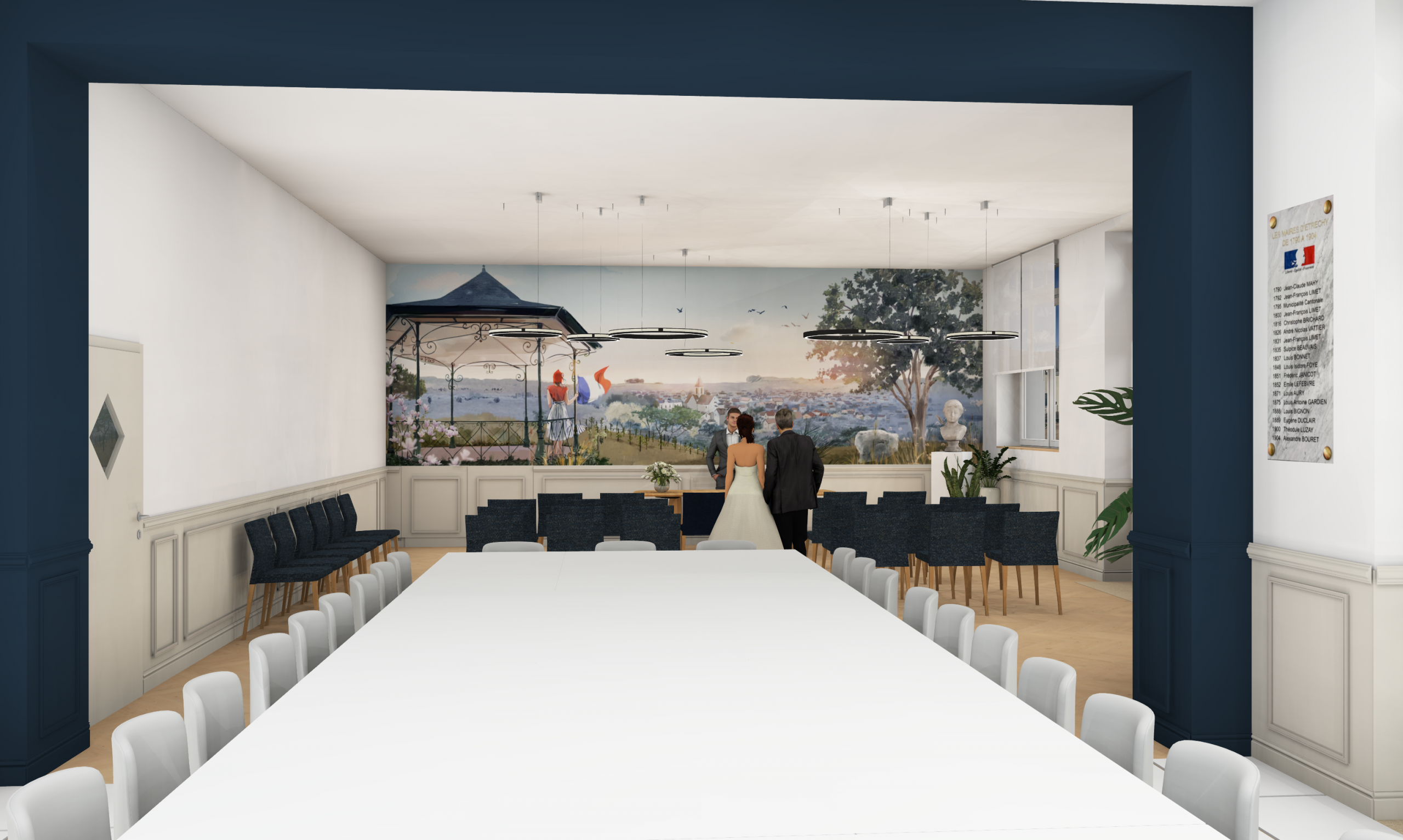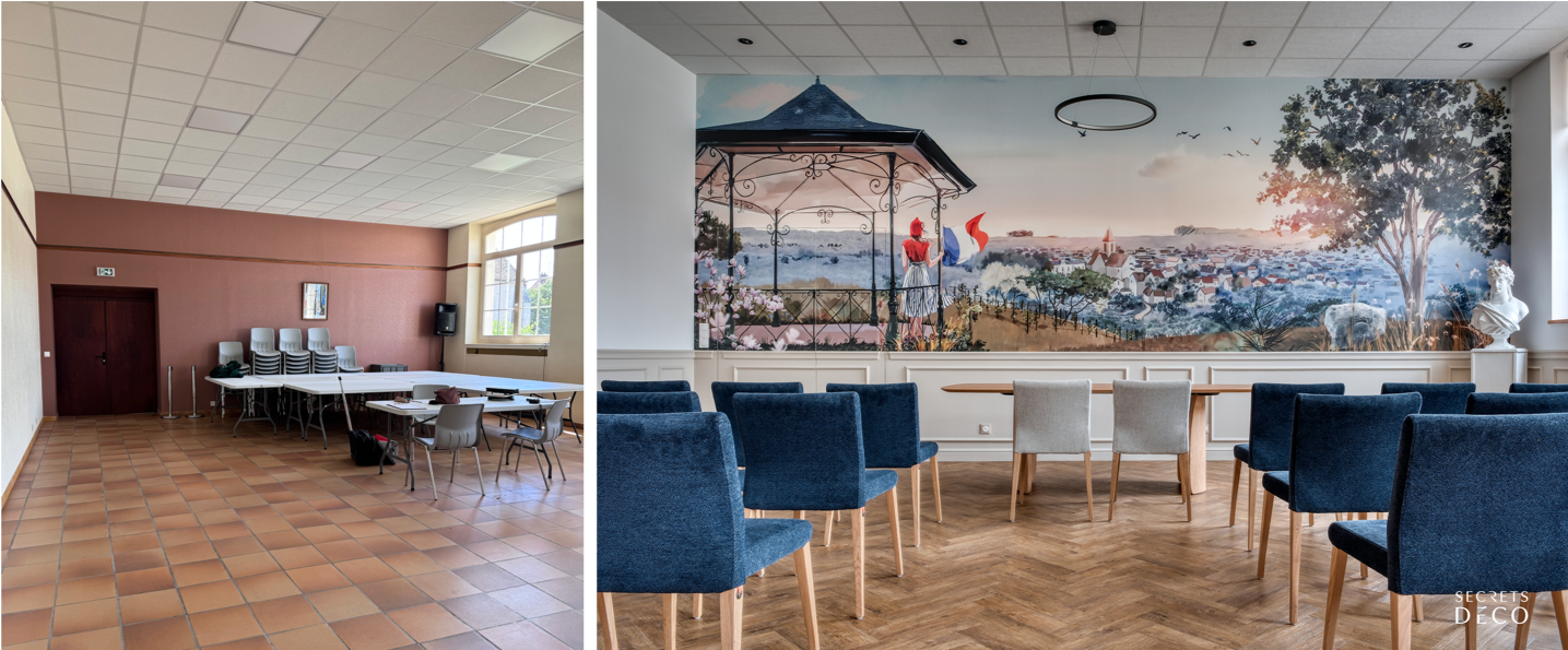 J’ai été contactée par Julien GARCIA, Maire d’Étréchy (Essonne), pour repenser entièrement la salle des mariages et la salle du conseil municipal, 2 espaces emblématiques qui avaient besoin d’une rénovation complète.