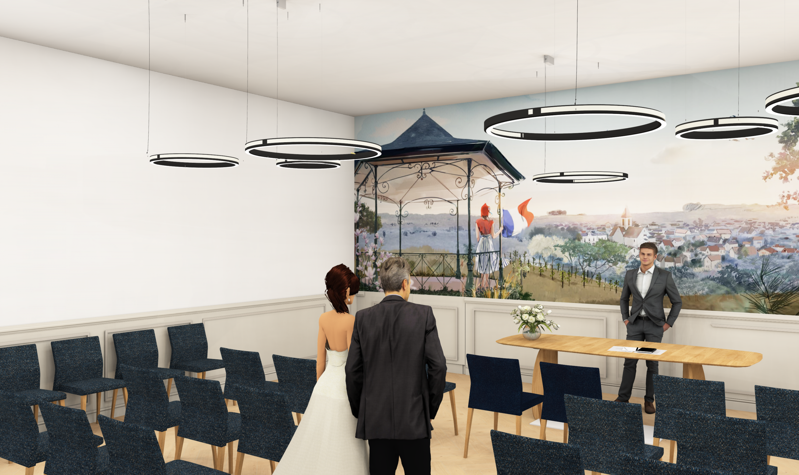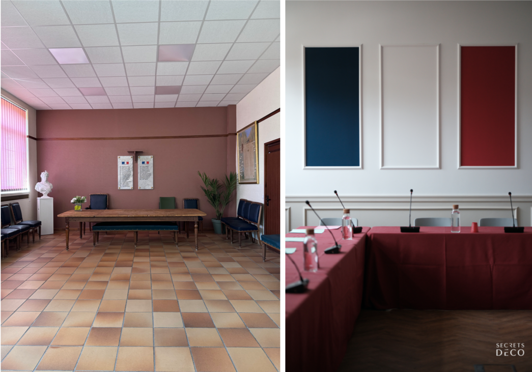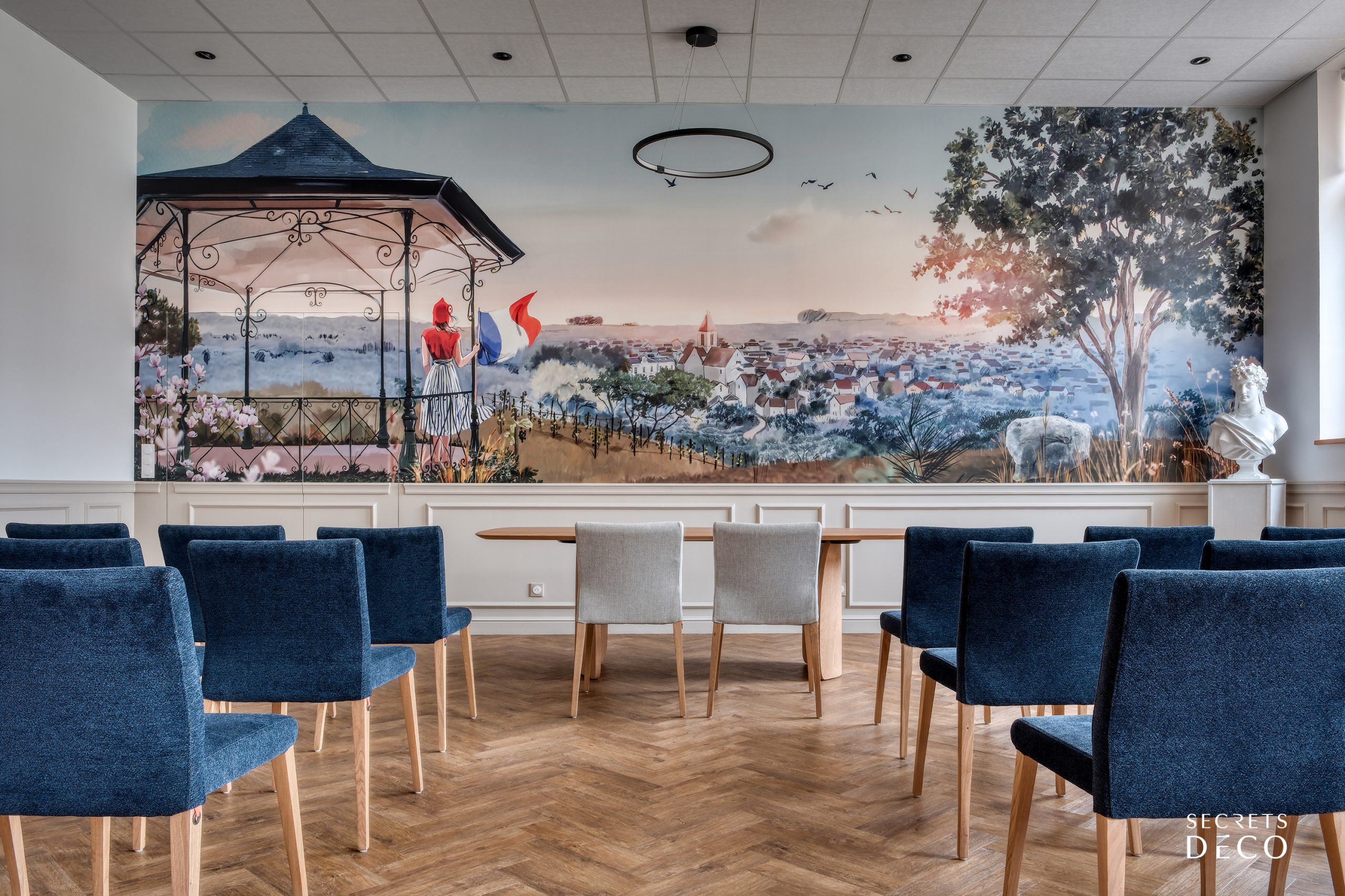 J’ai été contactée par Julien GARCIA, Maire d’Étréchy (Essonne), pour repenser entièrement la salle des mariages et la salle du conseil municipal, 2 espaces emblématiques qui avaient besoin d’une rénovation complète.