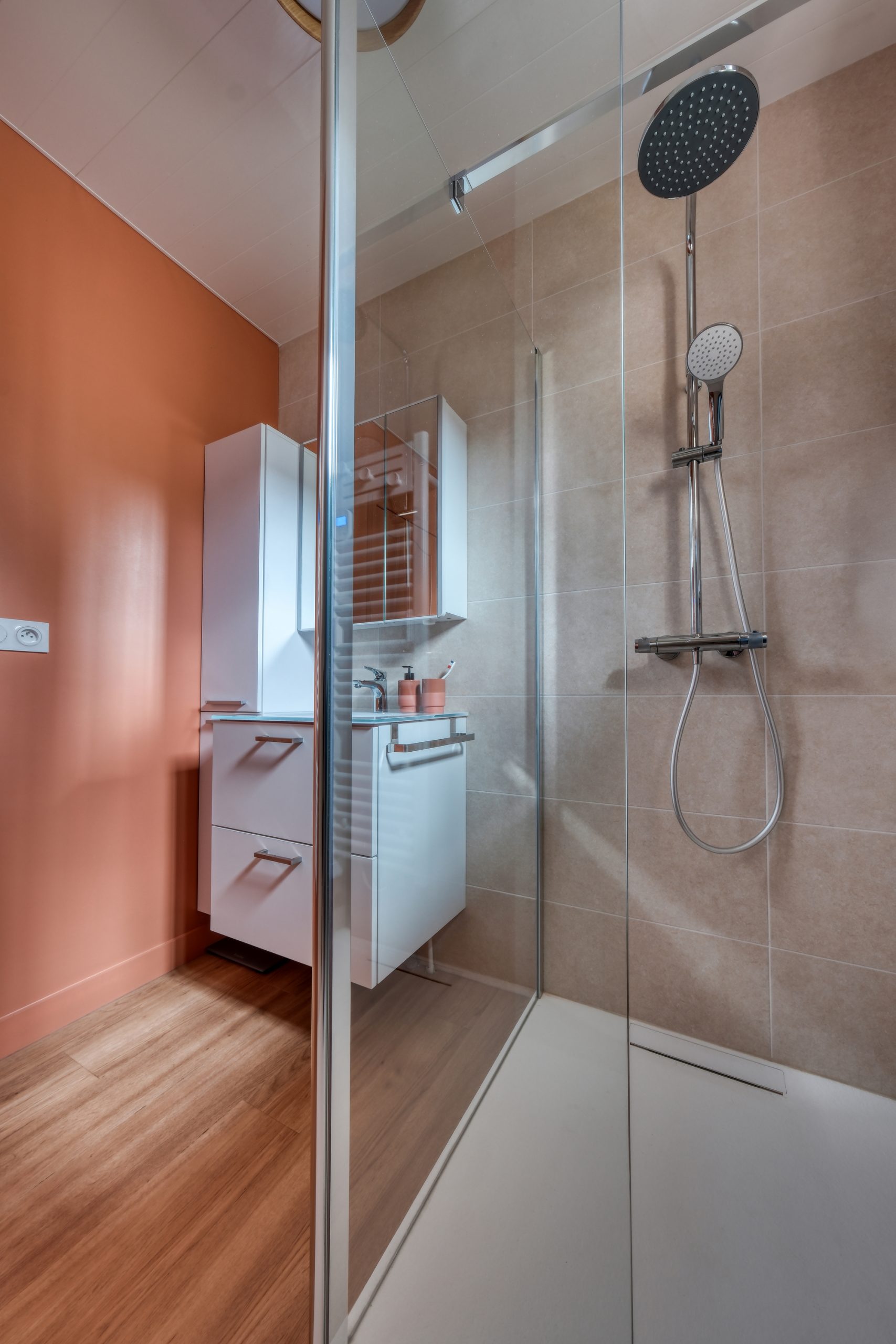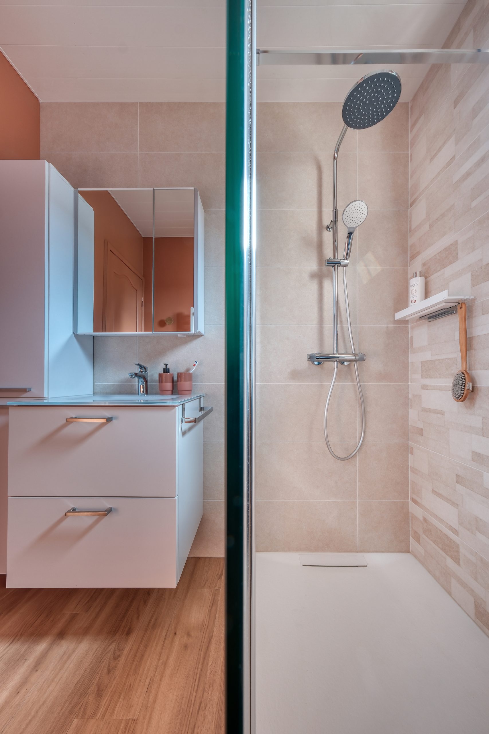 Le résultat est une salle de bain à la fois accessible, fonctionnelle et chaleureuse, parfaitement adaptée aux besoins de ma cliente.