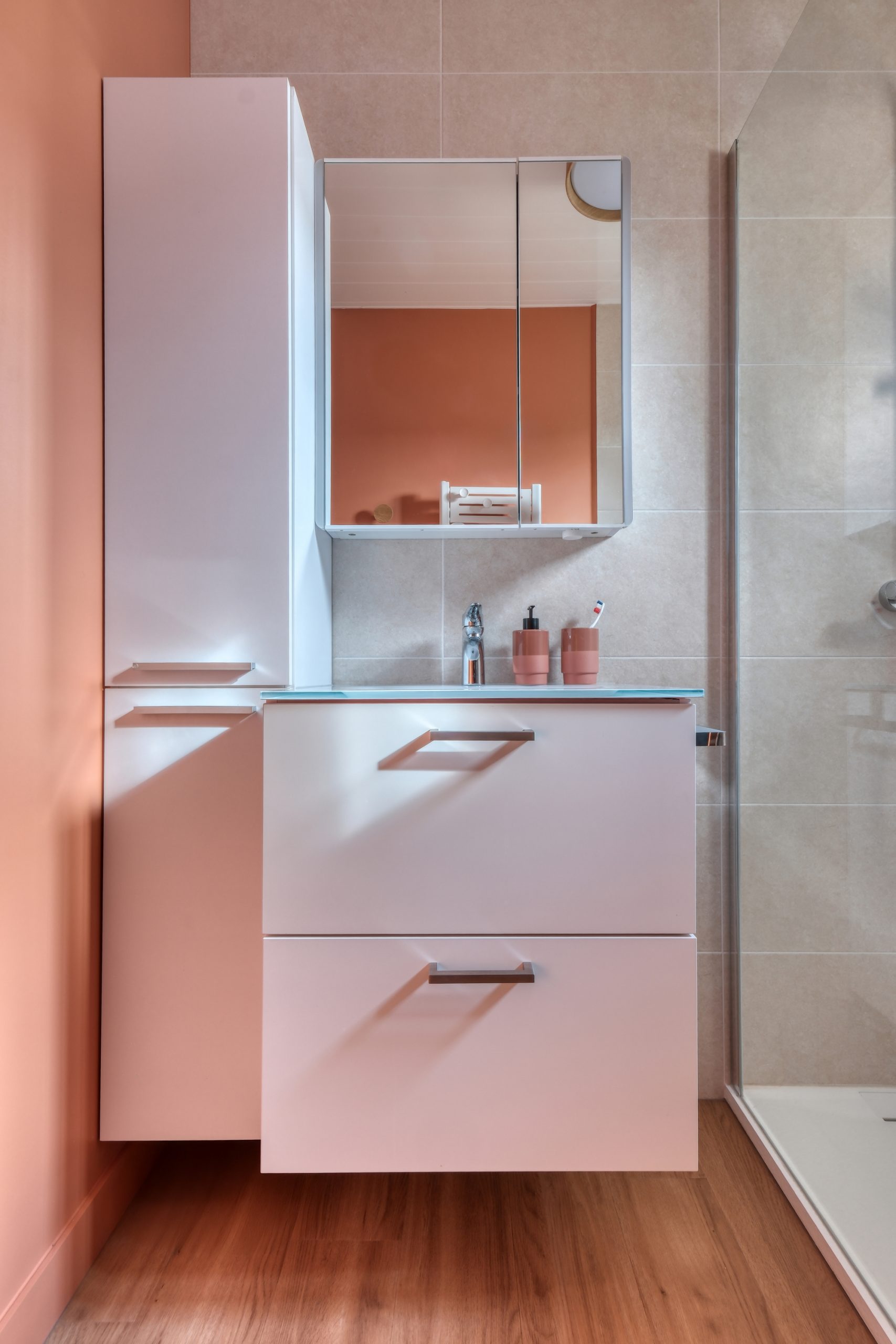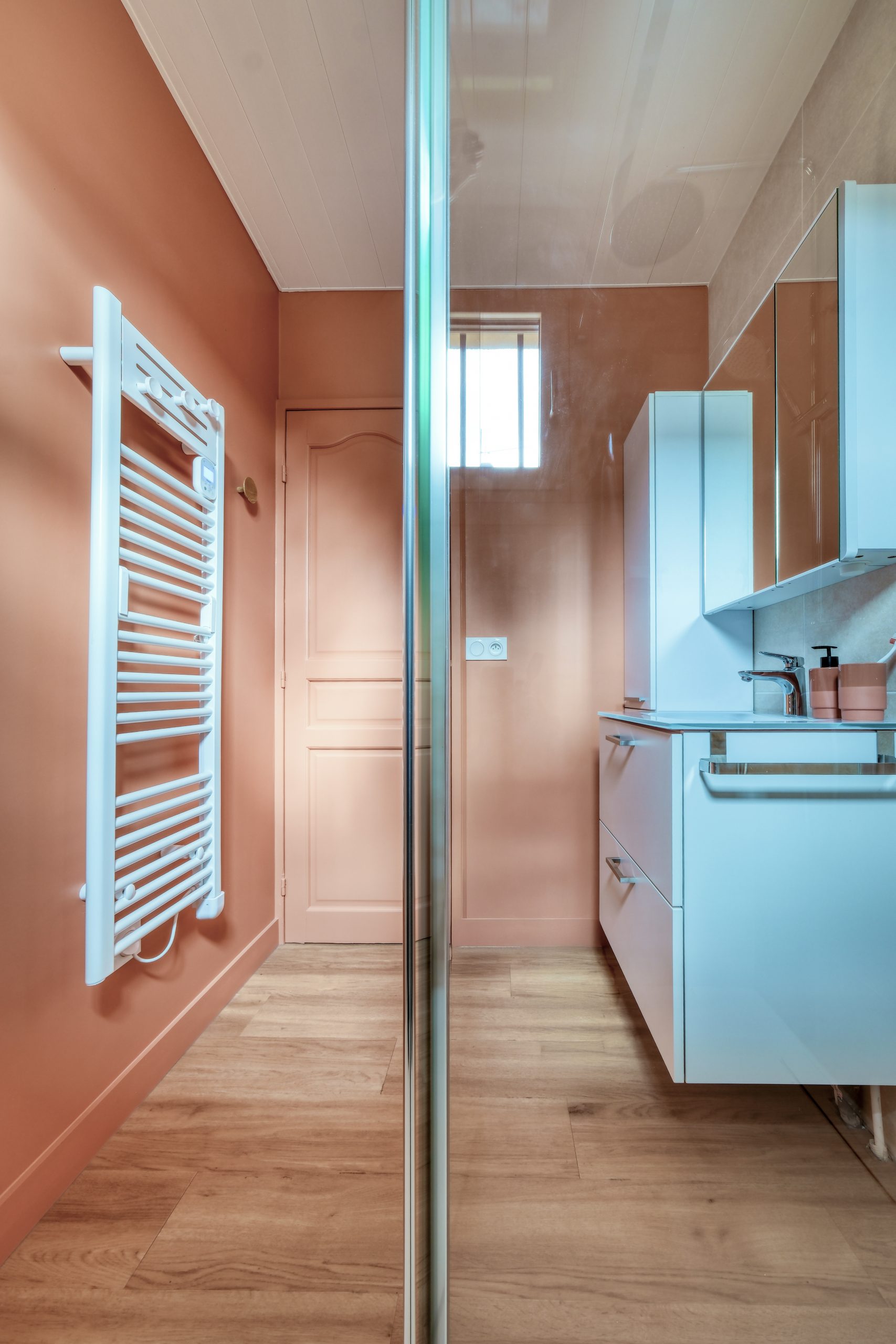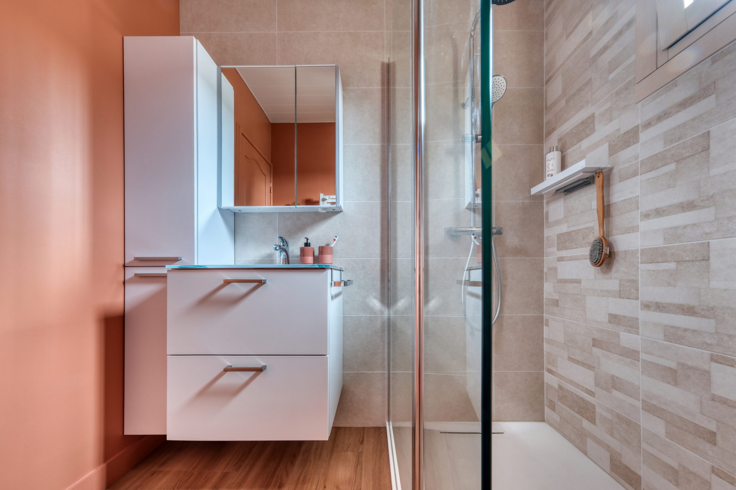 Je vous présente ici un projet de rénovation de salle de bain que j’ai réalisé pour une cliente chez qui j’avais déjà refait son entrée.